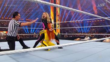 Becky Lynch luchó con todas sus fuerzas, pero Trish Stratus estaba decidida a llevarse la victoria. A pesar de los intentos de Lynch por aplicar su famoso «Disarmher» y un «Manhandle Slam», no logró doblegar a su rival. En ese momento, el árbitro intervino y separó a las luchadoras, dándole a Becky la oportunidad de tomar un respiro fuera del ring.