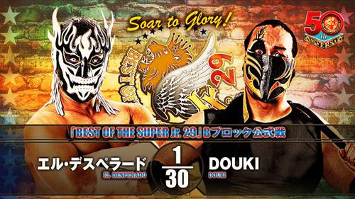 10. Best of the Super Jr. – Grupo B: El Desperado [10] derrotó a DOUKI [6] (21:51) con la Numero Dos.