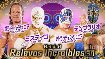 5. Relevos Increíbles: Hiroshi Tanahashi, Último Guerrero y El Desperado vencieron a Hechicero, Magia Blanca y SHO (13:11) con High Fly Flow de Tanahashi sobre Hechicero.