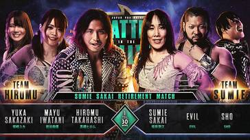 Sumie Sakai compitió en la quinta lucha de la función, haciendo equipo con EVIL y SHO de House of Torture, quienes enfrentaron a Hiromu Takahashi, Mayu Iwatani y Yuka Sakazaki. Fue la propia Sakai quien eligió al miembro de LIJ como uno de sus oponentes finales.