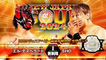 9. IWGP Jr. Heavyweight Title, Steel Cage Match: El Desperado venció a SHO (c) (28:57) con la Pinche Loco – conquistando el título..