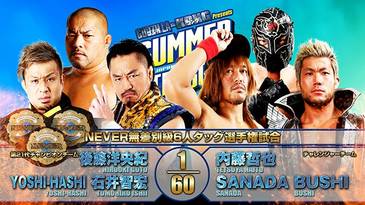 5. NEVER Openweight Six Man Tag Team Title: Hirooki Goto, Tomohiro Ishii y YOSHI-HASHI (c) derrotaron a Tetsuya Naito, SANADA y BUSHI (36:56) con un Vertical Drop Brainbuster de Ishii sobre BUSHI defendiendo el título.