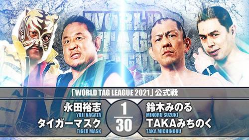 En el último duelo de la jornada, Yuji Nagata y Tiger Mask lograron su primer triunfo pasando sobre Minoru Suzuki y TAKA Michinoku de Suzuki Army.