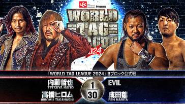8. World Tag League – Grupo B: Tetsuya Naito y Hiromu Takahashi [8] vencieron a «King of Darkness» EVIL y Ren Narita [8] (19:23) con la Destino de Naito sobre Narita.