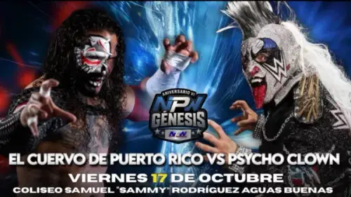 En la lucha estelar y directamente desde la WWE y Triple AAA en México regresa el Psycholoco, Psycho Clown para enfrentarse al nuestro El Cuervo de Puerto Rico