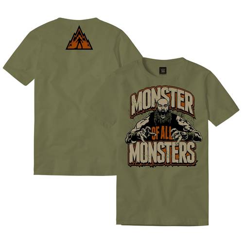 Debido a su regreso WWE Shop ha sacado a la venta su nuevo articulo relacionado con el monstruo entre hombres. La nueva camiseta de Braun Strowman viene en color verde olivo. Muestra la inscripción Monster of all Monsters en letras color blanco con bordes anaranjado, la imagen de Strowman se encuentra en el centro. En la parte trasera se encuentra una imagen del luchador de color negro en un fondo naranja.