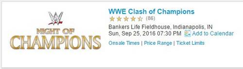 Además, TicketMaster ha modificado el nombre de Night of Champions, evento programado para el próximo 25 de septiembre en el Bankers Life Fieldhouse de Indianapolis, Indiana, a Clash of Champions,