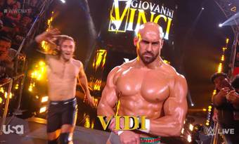 Frazer, quien llegó de NXT UK, empezó dominando el combate y hasta tiró a Carmelo contra el poste del esquinero. Carmelo luego le aplicó un Rodillazo a Frazer y le conectó un Slingshot Legdrop para obtener una cuenta de dos segundos.