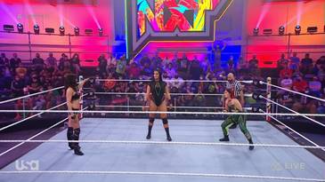 La lucha inició con Shirai tirando fuera a ambas rivales con patadas voladoras tipo misil. Persia luego golpeó a Shirai con una Contralona y esta respondió tirando a la lona a su rival. Jayne falló un Tope Suicida dado que sus pies quedaron atrapadas en la tercera cuerda y cayó de cabeza al ring. Lamentable para ella. Shirai luego las atacó con un doble Asai Moonsault.