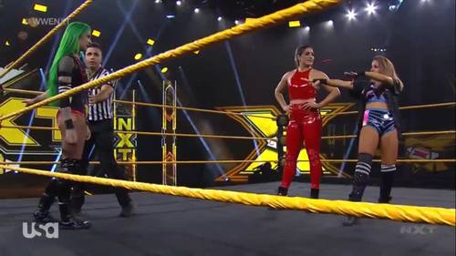 LeRae ingresa, pero cae presa del Crossface. Gargano le toma la pierna a Shirai y rompe la llave. Priest va en su auxilio, pero no consigue el Chokeslam. Shirai ataca a Gargano y LeRae la sorpende y logra una cuenta de dos.