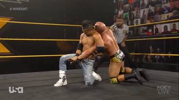Ciampa contraataca con un dropkick tras liberarse de la llave y ahora él es quien lleva el control del encuentro. Kushida contraataca con una ráfaga de golpes, pero Ciampa logra neutralizarlo con un Irish Whip contra el esquinero, para recuperar el control.