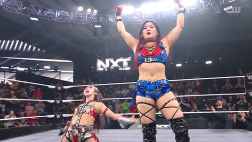 La más reciente edición de NXT, abrió con una buena lucha femenil por equipos entre Iyo Sky y Kairi Sane de Damage CTRL y Lash Legend y Jakara Jackson de Meta-Four.