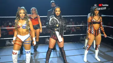 Jacy cubrió a Grey, pero Lola le puso a Grey la pierna en las cuerdas… Fatal Influence se metió atacando a Lola, pero Wren Sinclair le cayó encima a las chicas con plancha cruzada y las sacó del ring.