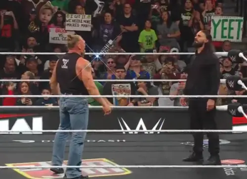 Tras esas palabras, Lesnar hizo su aparición y comenzó a atacar a todos los enmascarados que acompañaban a Rollins. Uno a uno fueron cayendo o huyendo del ring ante la furia de “The Beast”, quien rápidamente dejó el cuadrilátero prácticamente limpio. Cuando parecía que Lesnar estaba listo para enfrentar directamente a Rollins, ocurrió un giro inesperado.