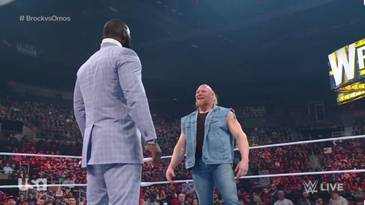 Omos le dio la mano a Lesnar, pero no lo soltó lo que hizo que Brock le soltara un par de golpes, pero el nigeriano terminó por sacarlo del encordado.