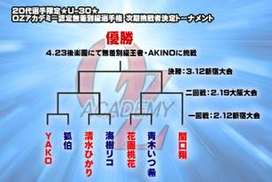 3. OZ Academy Openweight Title Tournament – Round 1: Itsuki Aoki venció a Momoka Hanazono (12:54) con un Diving Body Press.