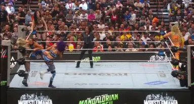 Enfrente estuvieron las campeonas The Irresistible Forces (Nia Jax y Lash Legend), además de Charlotte Flair y Alexa Bliss, y el equipo de Bayley y Lyra Valkyria, en una lucha donde el caos fue protagonista desde el primer segundo.