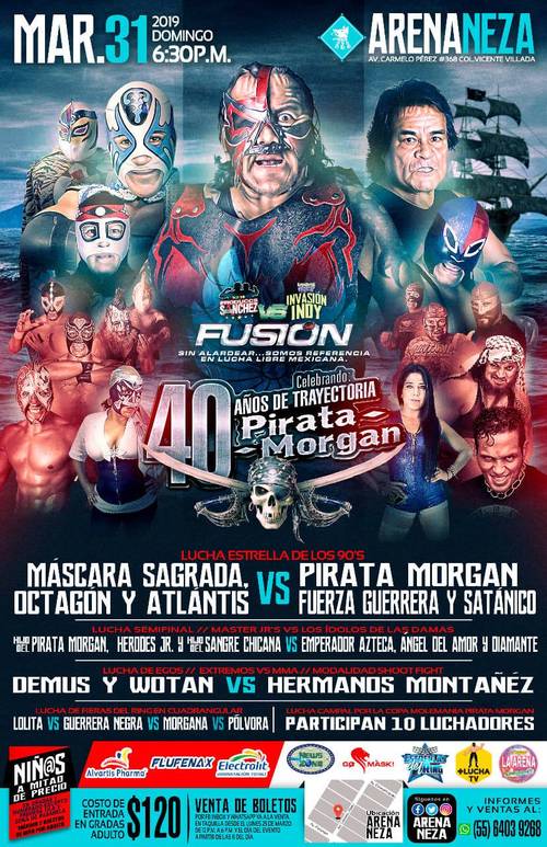 Con motivo de 40 años de exitosa carrera profesional, el rudísimo luchador Pirata Morgan prepara una gran celebración, que tendrá lugar el domingo 31 de marzo en la Arena Neza en el Oriente del Estado de México.