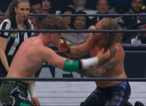 Kyle Fletcher y Chris Jericho siguieron enfrentándose en el ring hasta que éste terminó aplicando unas murallas, de las cuales no pudo zafarse, hasta que Takeshita lo salvó.
