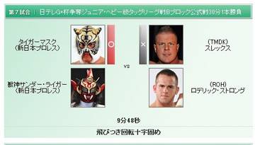 7. NTV G+ Cup Jr. Heavyweight Tag League – Grupo B: Jushin Thunder Liger & Tiger Mask IV [2] vencen a Roderick Strong & Slex [2] (9:48) cuando Tiger usa una Jumping Crucifix Hold sobre Slex.