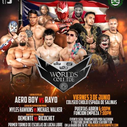 La empresa PRWA (Puerto Rico Wrestling Association) presenta el evento Worlds Collide este próximo viernes 3 de junio en el Coliseo Angel Cholo Espada de Salinas en Puerto Rico desde las 6:00 pm entrada completamente libre de costo. El campeón peso completo de WOWT, El Cuervo de Puerto Rico ectara defendiendo el campeonato ante Michael Walker. Tuvimos en entrevista al Presidente de la PRWA, el Sr. Eric Garcia, donde nos comento todo lo relacionado para este evento.