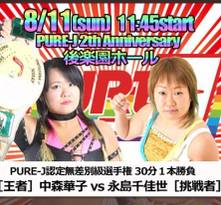 2. PURE-J 2nd Anniversary Special Singles Match: Kaori Yoneyama derrotó a AKARI (6:13) con un Second Rope Senton.