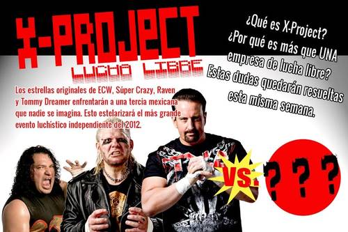 Valerie Richter, Presidenta del nuevo proyecto independiente mexicano X-Project Lucha Libre ha puesto en su Facebook esta imagen en donde los exECW Tommy Dreamer, Raven y Súper Crazy “enfrentarán a una tercia mexicana que nadie imagina” el próximo domingo 19 de febrero de 2012.
