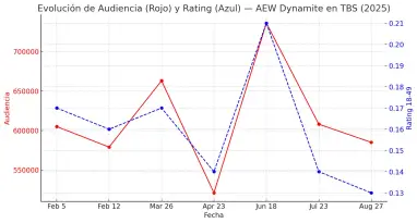 El año pasado por estas fechas, el 20 de noviembre de 2024, Dynamite atrajo a 640.000 espectadores y una audiencia de 0,20 (para la categoría de 18 a 49 años). El episodio del 22 de noviembre de 2023 atrajo a 845.000 espectadores y una audiencia de 0,26.
