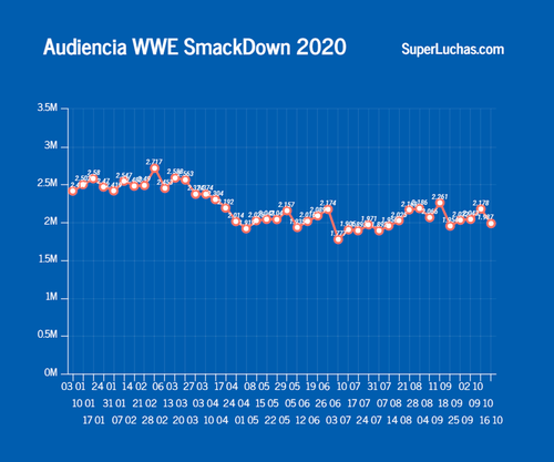 Aunque SmackDown ha sido el programa de WWE que mejores resultados ha dado en ratings, últimamente ha estado bajando de manera importante. De estar en el primer o segundo lugar de manera regular, esta semana el show de los viernes bajó al séptimo puesto.