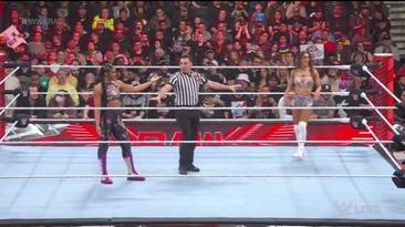 Carmella pateó a Belair cuando esta quería meter del cabello a Belair, pero no le alcanzó para la cuenta de tres. Belair se subió a la segunda soga y en el esquinero le dio 10 derechazos a la cabeza a Carmella. Green se metió al ring, Belair la mandó a volar y se bajó del ring para corretearla y arrojarla por encima de la barricada de protección.