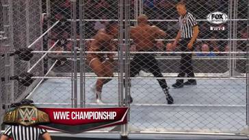 Lashley luego sorprendió a Big E y lo azotó contra la lona. Big E detuvo a Lashley cuando intentaba salir de la jaula pero no pudo hacerle un Súper Big Ending.