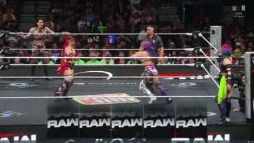 En la primera lucha de la noche de la más reciente edición de Raw presentada por WWE, vimos a la nueva Campeona WWE, Rhea Ripley, hacer equipo con Iyo Sky, quien la ayudó a ganar el título en WrestleMania 42 ante Jade Cargill, ante Asuka y Kairi Sane.