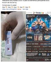 Según informó a SUPERLUCHAS uno de los organizadores de Invasión Indy y VPR producciones, se realizaron pruebas a todos los elementos que participaron en la función, primero hace una semana la PCR y este sabado se utilizaron pruebas rápidas, las cuales tienen una eficacia del 80%. Estas últimas fueron aplicadas por médicos certificados, quienes son ajenos a la promotora.