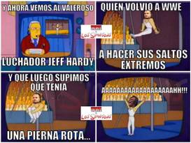 Ya empezó la hora cus cus, la hora chingüengüenchona, la hora ya vas que chutas, la hora memeadora… Vámonos a rememerar la semana: Y bueno, por ahí nos enteramos que Jeff Hardy volvió, peroooo: Y si Joey Ryan los viera: https://www.facebook.com/auhbon/videos/10208314961221533/?__mref=message_bubble Mientras tanto en la carrera presidencial de Estados Unidos: https://www.facebook.com/unexpectedcena/videos/1549864228669205/ Y ahora, La