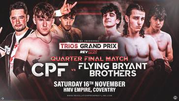- CUARTOS DE FINAL DEL GP DE TRÍOS: CPF (Joe Lando, Danny Black y Maverick Mayhew) derrotaron a Flying Bryant Brothers (Leland Bryant, Nino Bryant y Zander Bryant). Leland recibió el conteo de tres luego de un ataque conjunto de CPF. Enorme exposición para el debut de los Bryant en RevPro, cachorros de la London School Of Wrestling que encajarían perfectamente dentro de la división de tercias delCMLL, con Nino como «MVP». Acierto completo situarlos en el estelar, pues el choque fue trepidante, recordando a los mejores tiempos de PWG, con secuencias fuera de las rutinas habituales del estilo crucero que suelen verse hoy día. CPF irán contra The Spectral Envoy en semifinales.Anuncio