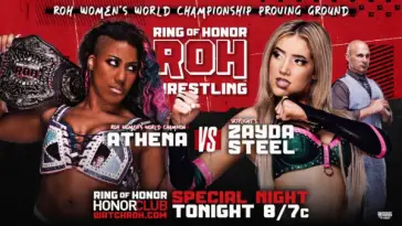 También un «proving ground match», con Zayda Steel buscando su oportunidad por el Campeonato Mundial ROH que ostenta Athena. Y de cara a Supercard Of Honor 2026, cinco duelos clasificatorios para conseguir plaza en el Survival Of The Fittest por el oro de Athena: