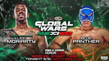 , se emitieron anoche por primera vez: Blue Panther vs. Lee Moriarty, un choque de duplas donde Athena y Red Velvet fueron contra Thunder Rosa y Persephone y un «proving ground match» entre Nick Wayne (Campeón Mundial de Televisión ROH) y Titán.Este episodio semanal de ROH pudo verse en directo vía HonorClub, con una hora de inicio más temprana de lo habitual, las 6 pm ET, ya que ayer TNT emitió capítulo de Collision desde las 8 pm ET.