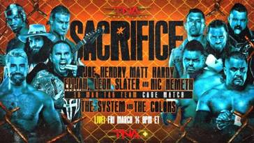 - Si algo no puede reprocharse a la TNA de la «Anthem Era» es descuidar sus grandes shows. Sacrifice siguió esta línea, y sólo tuvo dos peros: la victoria de Ash y Heather By Elegance en pos de nuevo «crossover» con WWE NXT y la sensación de evento transitorio hasta Rebellion. Por lo demás, las expectativas depositadas en los combates sobre el papel más interesantes se cumplieron, y los a priori no tan interesantes superaron las expectativas. Nada mal para un viernes tonto. 7/10.