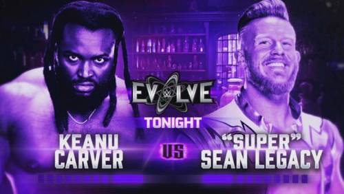 - El show abrió con Keanu Carver dando cuenta de lo que le ha llevado a enfrentar a Sean Legacy. Carver reiteró que pretendía defenestrar a los talentos del programa WWE ID, recordando cómo estos (Sean Legacy y Jackson Drake) evitaron que se coronara primer Campeón WWE EVOLVE. Supongo que tras Legacy, Carver irá entonces a por Drake, quien además es el actual monarca.Anuncio