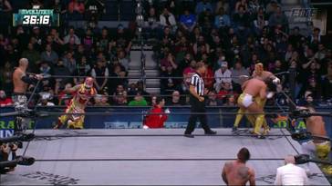 Sammy Guevara apareció en el ringside, pero Action Andretti apareció de la nada para derribarlo; sin embargo, la réferi se distrajo con esto, lo que fue aprovechado pro Jericho para golpear con un bat.