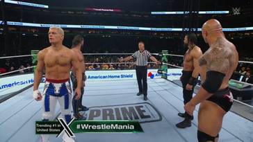 Finalmente, después de insultos y abusos de parte de The Rock, Cody Rhodes pudo enfrentarse a Dawye Johnson, y trabajando en conjunto con Rollinns, mantuvieron raya a sus dos rivales.