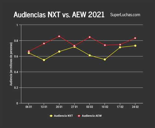 NXT, incrementó un 3% de audiencia con respecto a la semana anterior. Su rating fue de 0.18, un 13% superior, y superior a su promedio del 2021, que es de 0.16.