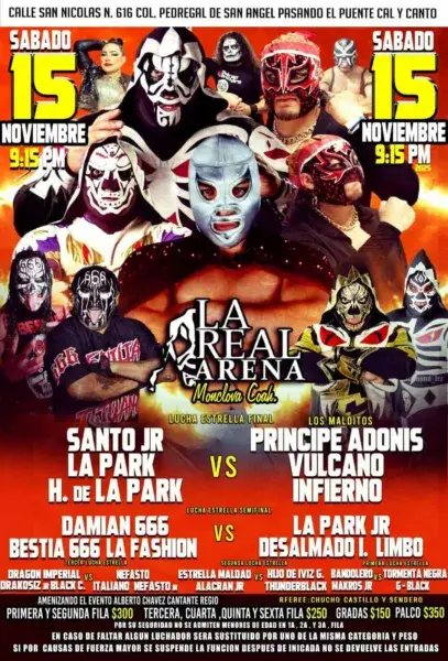 En la lucha principal, el joven enmascarado hará equipo con LA Park y el Hijo de LA Park para enfrentarse a Los Malditos, trío conformado por Príncipe Adonis, Vulcano e Infierno. Será una noche exigente, no solo por la calidad de sus rivales, sino también por el carácter fuerte de sus aliados, quienes suelen imponer su estilo dentro y fuera del ring.