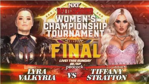 Una ya la conocíamos: la final del torneo que coronará nueva Campeona NXT, pues estaban programadas las dos semifinales. Lyra Valkyria derrotó a Cora Jade y Tiffany Stratton hizo lo propio con Roxanne Perez, así que en Battleground, la irlandesa y «The Buff Barbie Doll» batallarán por el oro que Indi Hartwell tuvo que dejar vacante el pasado día 2.