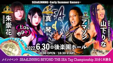 5. SEAdLINNNG BEYOND THE SEA Tag Team Title: Makoto y Asuka (c) derrotaron a Amazon y Rina Yamashita (19:39) con un Schoolboy de Asuka sobre Amazon (2nd defense) defendiendo el título