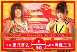 Mei Hoshizuki defendió por primera vez el Campeonato Mundial Jr. Sendai Girls ante Yurika Oka. La lucha comenzó muy nivelada, con ambas gladiadoras propinándose recios castigos, pero Hoshizuki tuvo que apretar al final para poder salir con la mano en alto.
