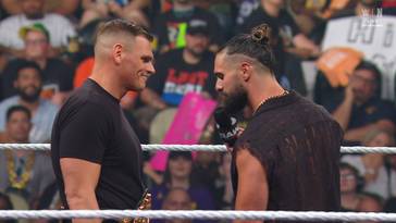 Rollins felicitó a Gunther por ser el nuevo Campeón Mundial Pesado y lo encaró con la mirada, pero en ese momento sonó la música