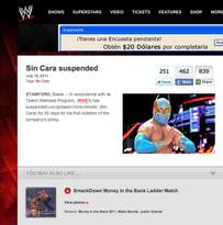 El luchador mexicano Sin Cara fue suspendido por 30 días por su primera violación de la política de salud la compañía; ésto se dio a conocer mediante un comunicado que WWE dio a conocer a través de su página oficial.