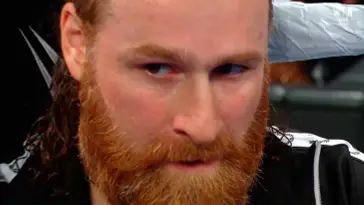 Sami reaccionó y arrojó de cara contra la mesa de comentarista a Fatu, este lo mandó duro de cara contra las escaleras metálicas.