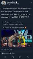 «Se sintió como si no se hubiera lavado el pelo en semanas. Date una ducha y lava ese ‘pelo’ antes de subirte al ring con la VERDADERA CINTURÓN NEGRO».Anuncio